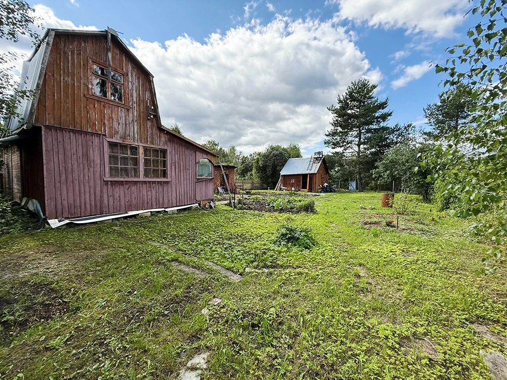Земельный участок 6 соток (20на 30 метров), огорожен забором. Подъезд к территории участка круглогодичный. Дом 2х этажный, в доме 3 комнаты. Отопление от печи. На участке расположена бревенчатая баня, в бане: парная, душевая (установлен дровяной Титан), комната отдыха. СНТ оборудовано водопроводной системой. Красивое и живописное место, рядом лес и озеро. Купание, рыбалка, грибы, ягоды. Транспортное сообщение развито. Один взрослый собственник.