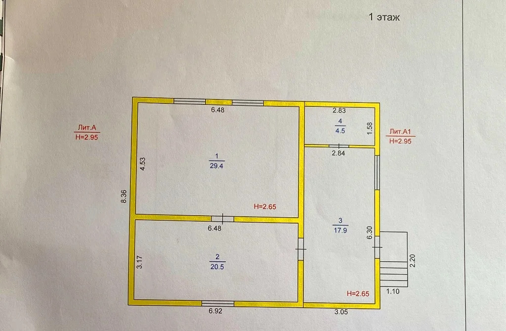 На 1 этаже расположены: 2 жилые комнаты по 14,7 кв.м, просторная кухня – 20,5 кв.м, прихожая -17,9 кв.м, ванная – 4,5 кв.м.